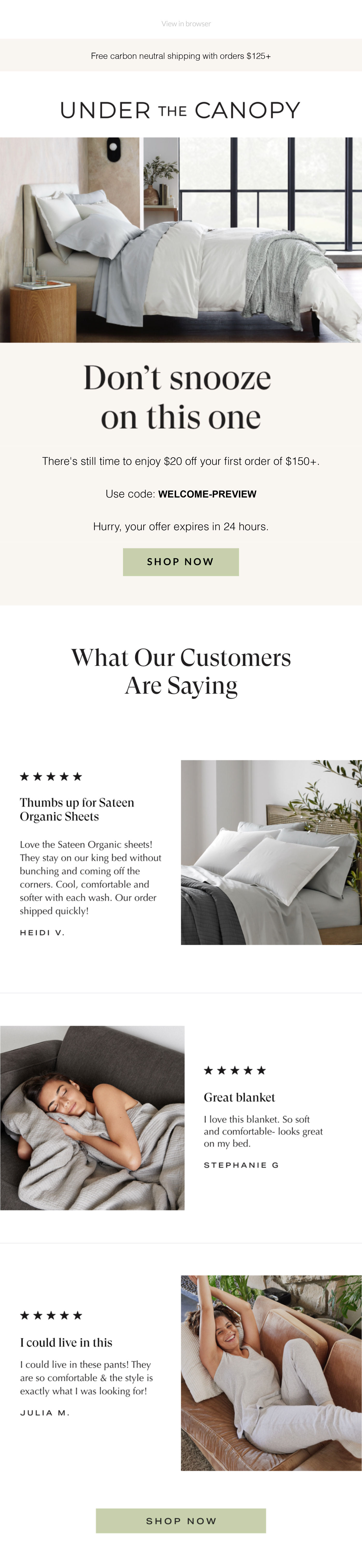 Strategic Shift: Sharper scarcity and urgency positioning. Final email in Welcome Series to reduce subscriber fatigue. Originally, the last email was a Category Spotlight (Apparel exploration) but I decided it was better suited for post-purchase flow and it distracted from primary conversion goal.